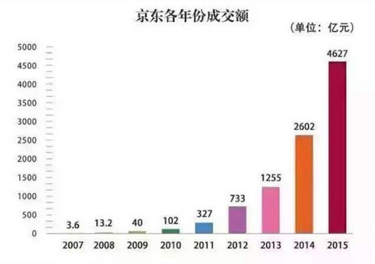 来感受一下这个“小火箭”。 京东2015年的交易额已达4700亿元,撇去人的因素不讲,单就事情的复盘上,常斌说,京东之所以能像坐火箭一样成长,原因有三: