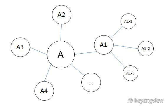 我们知道,人的大脑思考方式是一种放射性的思考,简单来说,通过A点可以想到A1,A2,A3,A4……,然后通过A1点又可以联想到A1-1,A1-2,A1-3,A1-4……不断的往下延伸和横向拓展,最终形成一个放射型的网状结构;