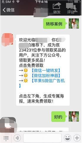 转移的方式上面提到一个,转移的方式很简单,和送礼品的模式相同,这里就不过多重复了。粉丝可以转移到其他公众号,微信个人号,QQ号,微信群QQ群等等都是可以的。