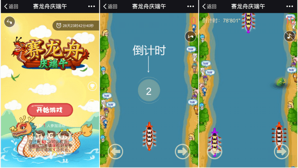 赛龙舟庆端午:锣鼓喧天好热闹,赛个龙舟庆端午。粉丝点击屏幕控制龙舟的移动方向,抢到水面的礼品。龙舟的速度会越来越快,在“捡福利”的同时,小心避让其它龙舟!