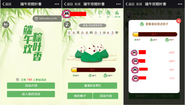 特点:将活动分享给好友,让好友帮自己增加粽子。