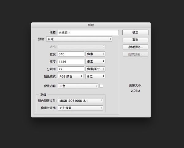 1、新建一个画布尺寸为:640*1136,然后保存,命名如:5S效果图模板