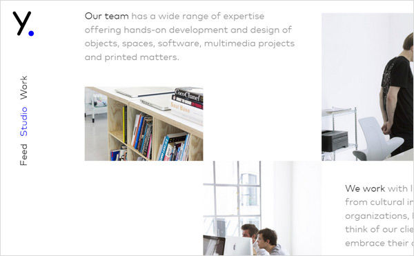 这个网站有两三个页面有用到黄金比例。主页是关键信息的一个概念性诠述。然而,当您访问工作室页面时,会发现它融合了一点传统的Web布局与黄金分割矩形,如以下页面: