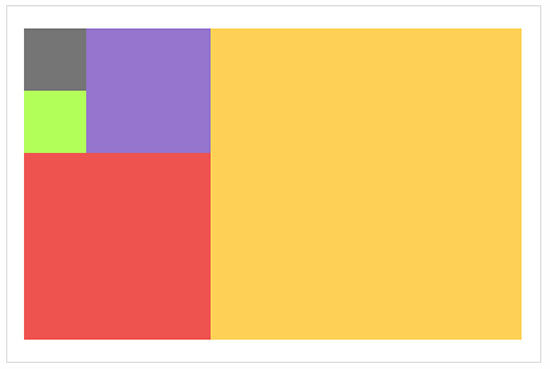 这可以无限期延续下去,会得出同样的黄金矩形效果,但这次是新建而不是切分。 黄金比例和斐波那契序列都能让我们做出吸引人的比例。