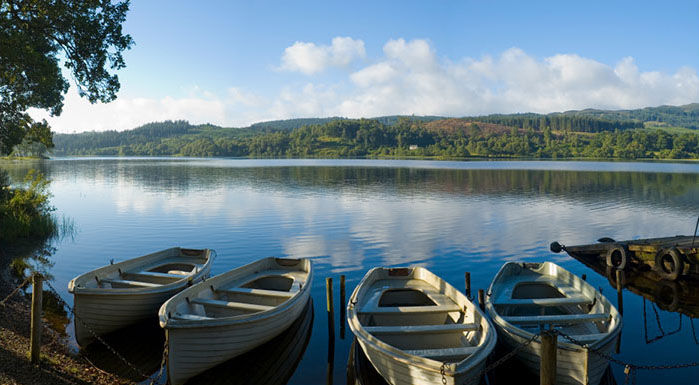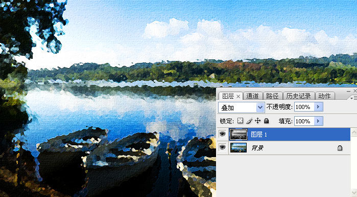 注:今天跟大家分享一个简单的PS教程,看看如何将湖面泊舟风景照制作成油画效果。