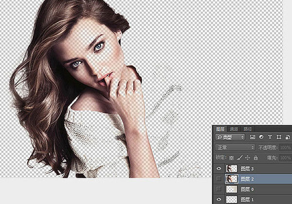 3、将钢笔路径转换为选区后,模特就被抠出来了,这时可以复制到新的图层。将原有图层中模特的轮廓部分挖掉,也就是删除掉。