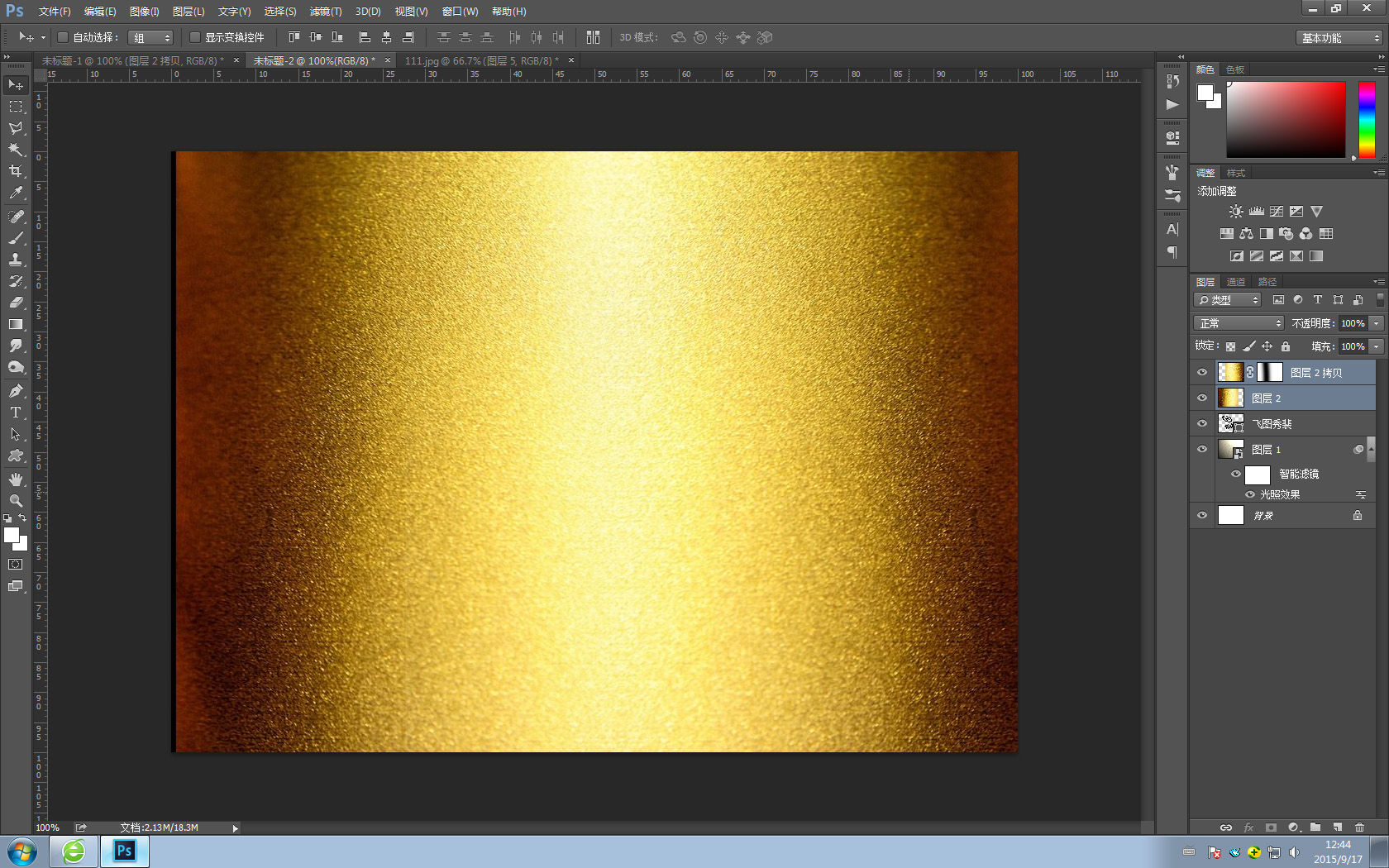选中”纸张层“,在滤镜中添加”光照效果“,模拟右上角的光源照射产生的渐变效果,你也可以使用渐变来实现,不过我认为”光照效果“应该更灵活。顺便说一句,我用的是CC2014。