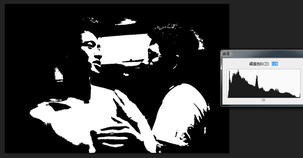 首先我们使用阈值,让图片变成黑白两色。