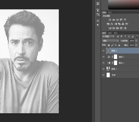 这张貌似黑白的图片还是带有一些色相,添加一个黑白调整层,你也可以直接去色,顺便添加一个曲线加强对比度,我主要的目的是让背景更接近纯白色。