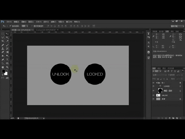 锁定图层大部分时候是因为不想再移动它,但有时真需要动它的时候却可能因为图层过多而找不到,即使勾选了直接选取图层也无法选中锁定了的,这个时候只要按住Alt在画布上点击被锁定的图层就可以选中了,不仅如此,其实被锁定的图层仍然可以进行一些操作,比如合并,如下图。