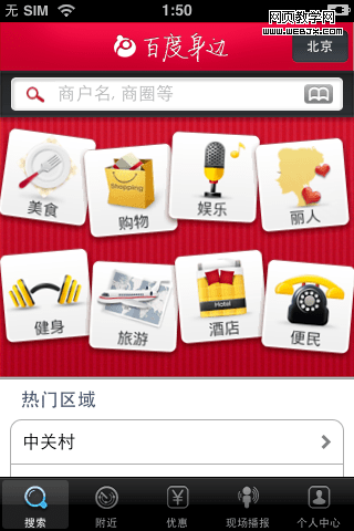 3,下拉选择框,如维络城、QQ美食、百度身边,主要在于对信息进行筛选时使用。