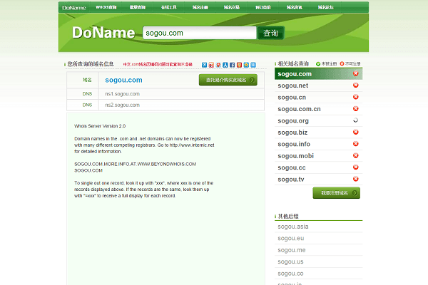 搜狗搜索是中国领先的中文搜索引擎,致力于中文互联网信息的深度挖掘,帮助中国上亿网民加快信息获取速度,为用户创造价值。其官网域名为 sogou.com 。
