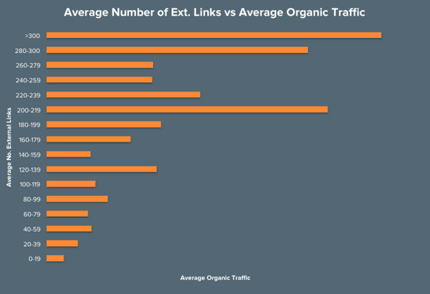下图为反向链接数量和自然搜索流量平均值的关系表: