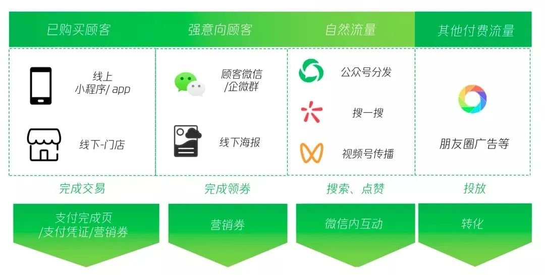 简单来说,此次视频号与微信支付打通,可以帮助企业触达最精准的四类人群,并找准其所在的交易场景。